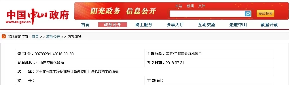廣東中山市發布《在公路工程招標項目暫停使用行賄犯罪檔案的通知》中,決定從2018年8月1日起,該局進行招標文件備案的項目,暫不再設置關于投標人需要提供行賄犯罪檔案的要求。這個做法目前還只是當地這樣做,并非全國性的做法。